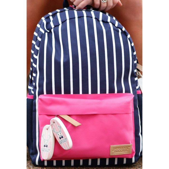 Signature striped fabric linerReinforced carrying handlesZippered main compartment closureExternal center storage sleeveStructured and reinforced base