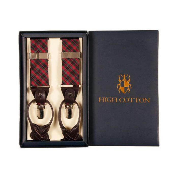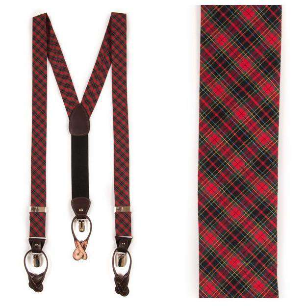 Red and Navy Tartan Suspenders/ Brace by High Cotton
