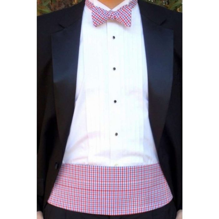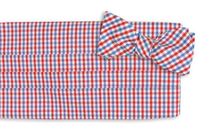 Red and Old Blue Tattersall Cummerbund Set by High Cotton