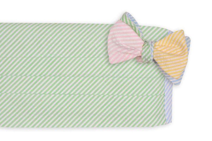 Seersucker Four Way Cummerbund Set with Mint Green Front by High Cotton