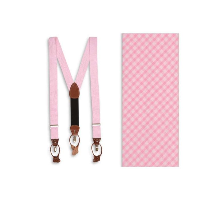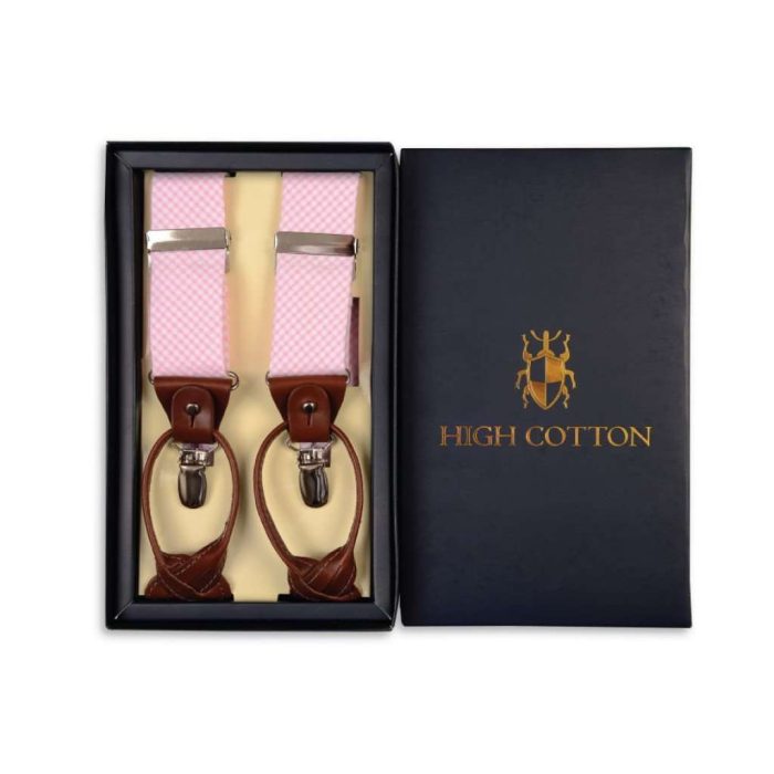 Seersucker Gingham Suspenders/ Braces in Pink by High Cotton