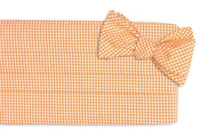 Soft Tangerine Seersucker Gingham Cummerbund Set by High Cotton