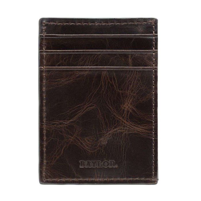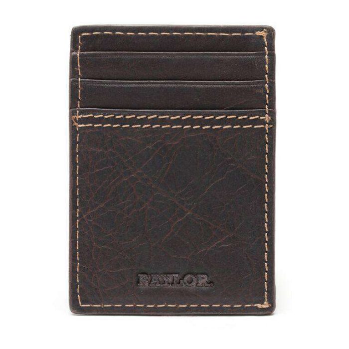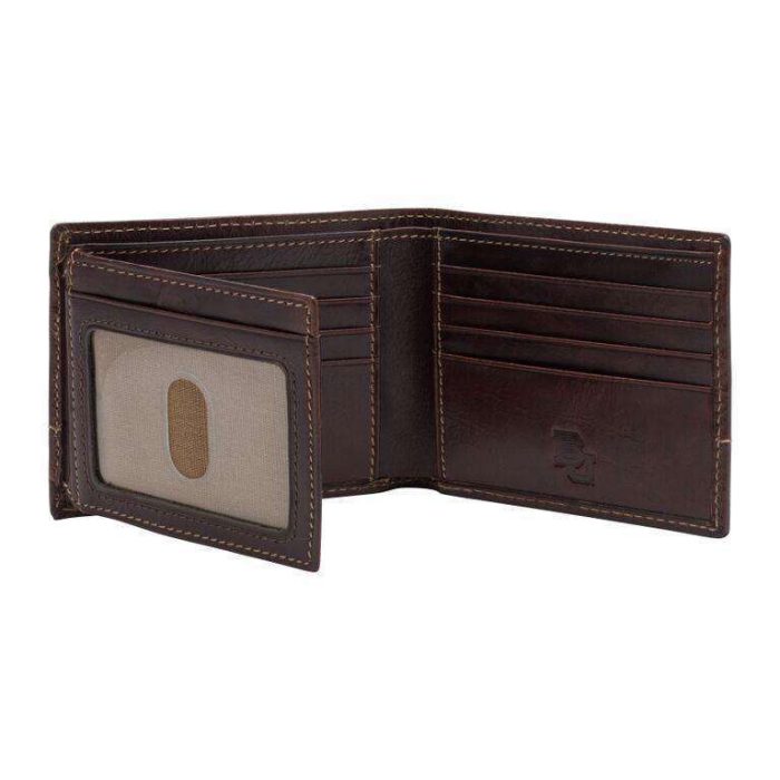 Genuine American Bison HideStitched by hand6 standard card slots2 hidden pocketsSuede pocket for cashSignature retriever logo heat embossed on interio