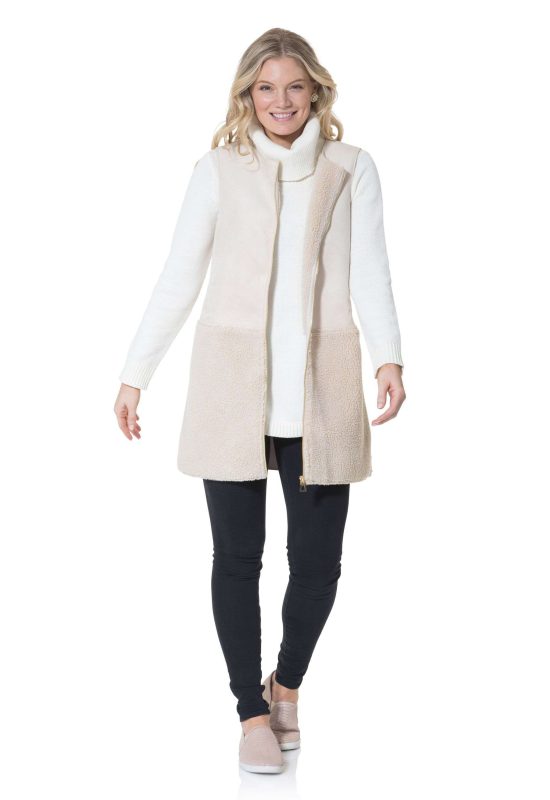 Suede Topped and Sherpa BottomFull STS Gold Zipper ClosureSherpa and Suede Interior100% PolyesterDry Clean OnlyBenefitsBeautifully made sherpa and sue