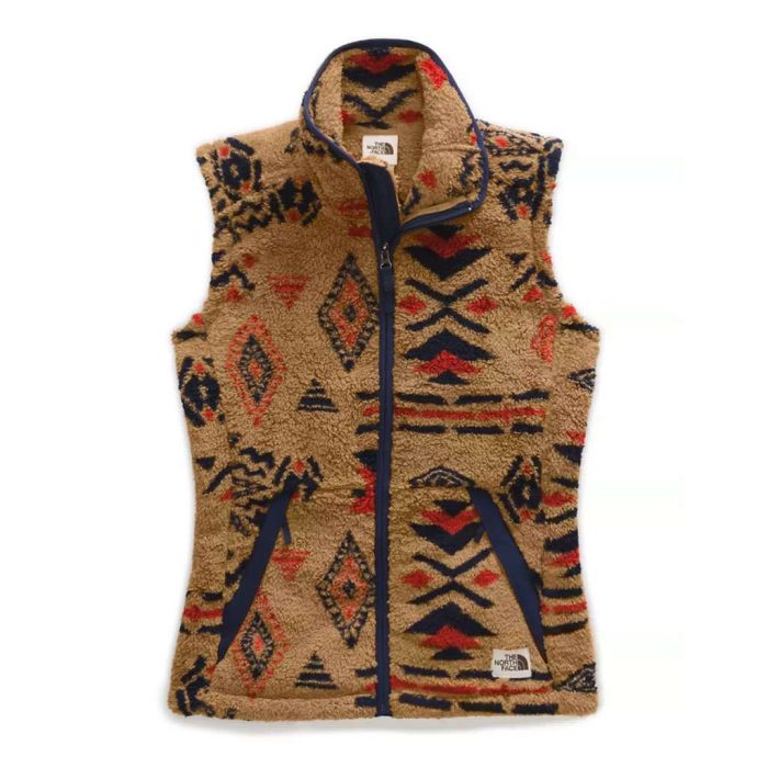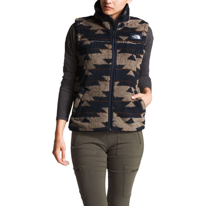 Women’s Campshire Sherpa Vest in Weimaraner Brown California Basket Print by The North Face