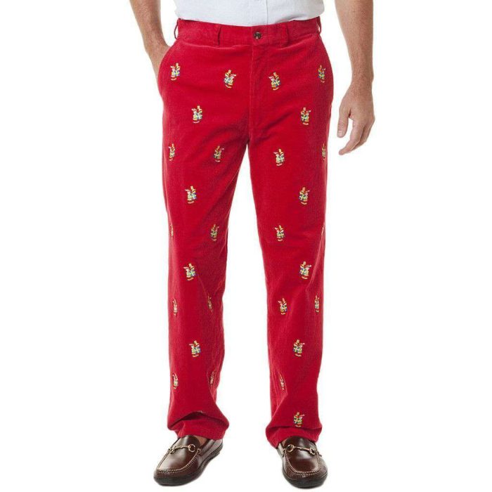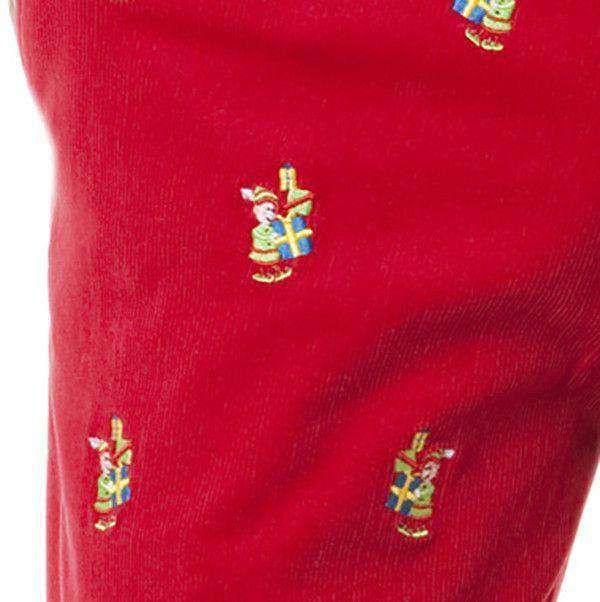 Beachcomber Corduroy Pants in Crimson with Embroidered Elf Delivery by Castaway Clothing