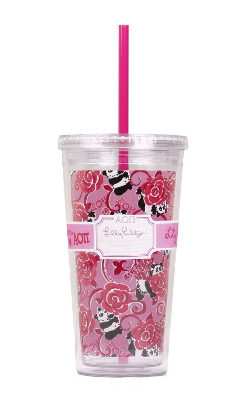 Alpha Omicron Pi Tumbler with Straw by Lilly Pulitzer