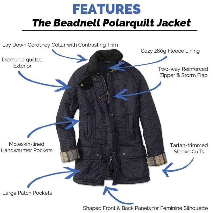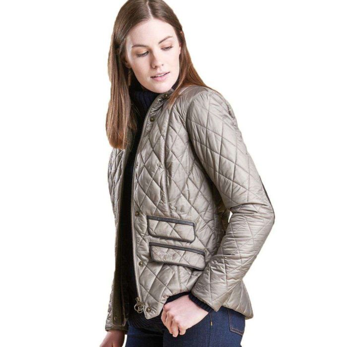 100% polyamide outer.Exposed zips with Barbour-branded block pullers.Quilted in a horizontal design.Barbour embroidery to the hem