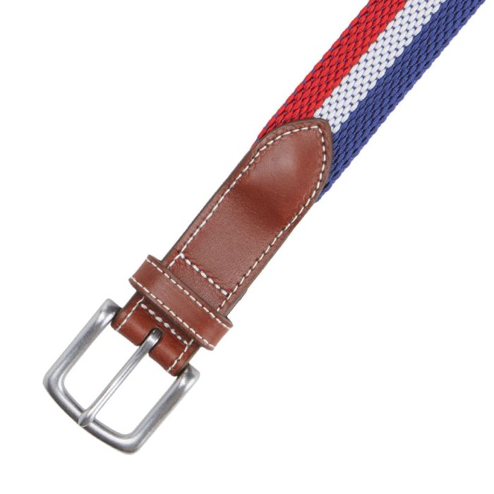 Details79% nylon, 21% rubber strap, and 100% leather endsGunmetal finished belt buckle with engraved brandingBraided bungee cord provides stretch offe