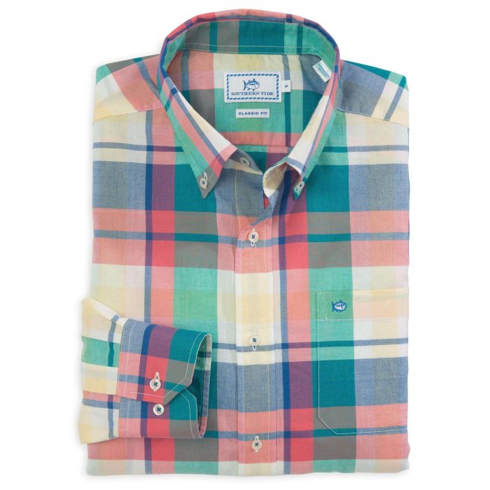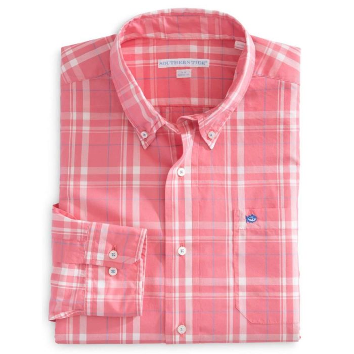 Windsail Plaid Classic Fit Sport Shirt in Coral Beach by Southern Tide