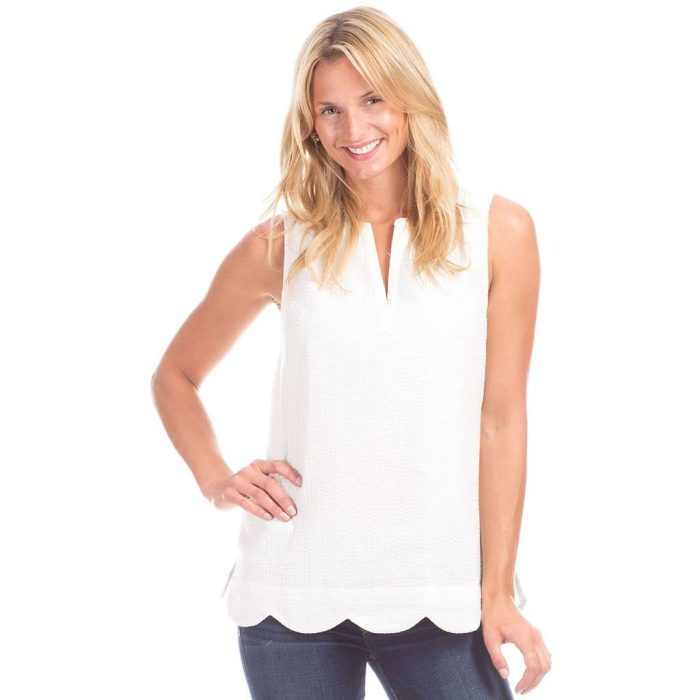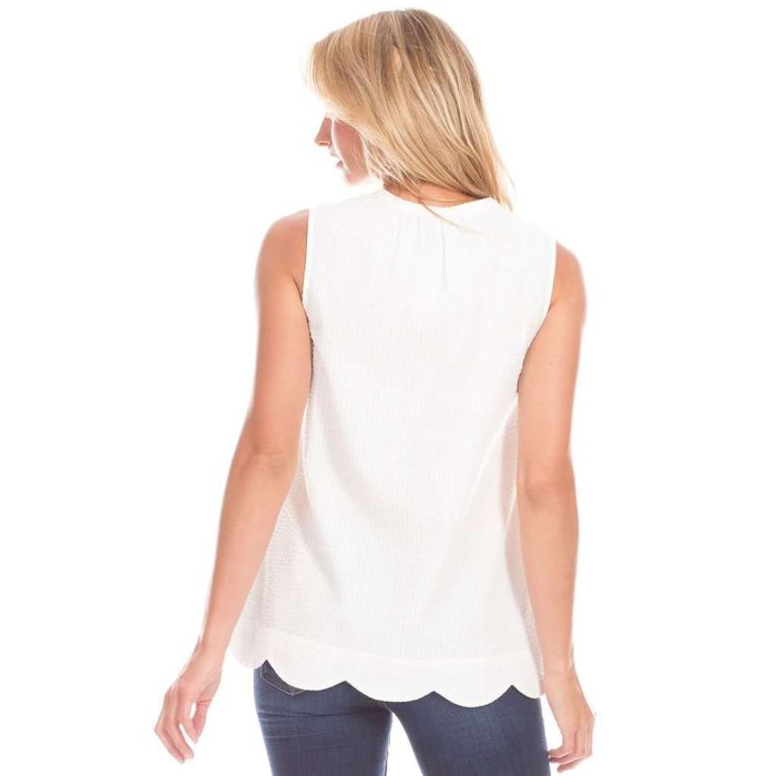 100% CottonMachine washImportedScalloped hem detailSize small measures 26.5