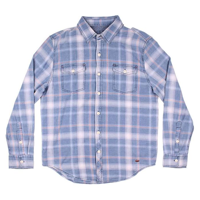 100% Cotton Twill Slub FabricSilicone Enzyme WashDouble Barrel Cuff with Button Sleeve PlacketEngraved ButtonsSingle Chest PocketSignature Neck TapeDa