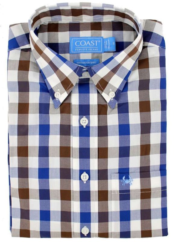100% Brushed cottonTraditional fitButton down collarTwo button adjustable cuffCustom Pecan buttons Embroidered logo on left arm