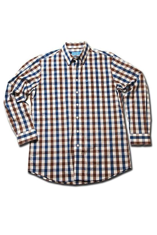 Traditional fit100% Brushed cottonButton down collar2 Button adjustable cuffCustom pecan buttonsTonal embroidered logo on the left arm