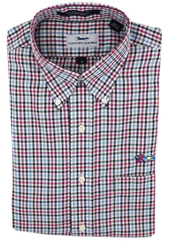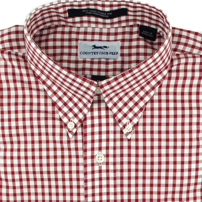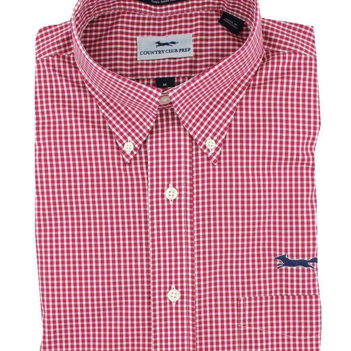 Button Down in Crimson Mini Gingham by Country Club Prep