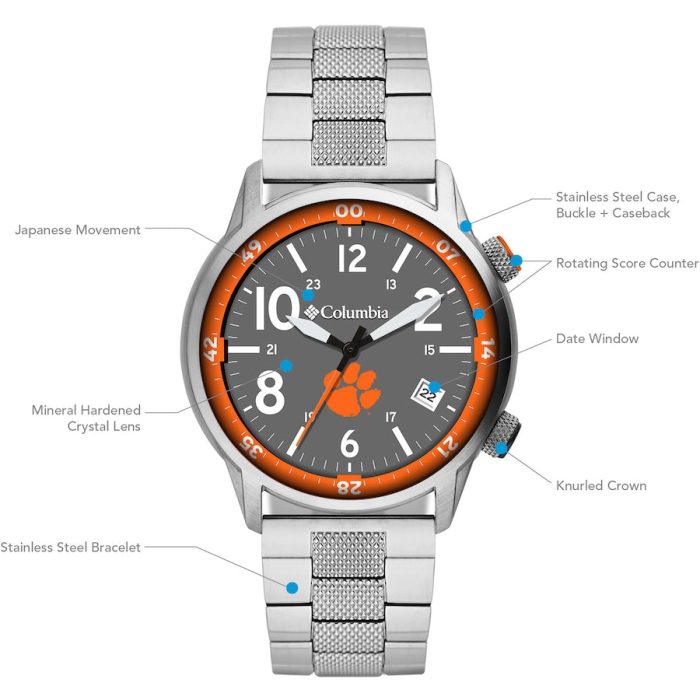 Clemson Outbacker 3-Hand Date Stainless Steel Watch by Columbia Sportswear