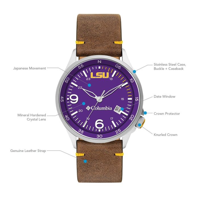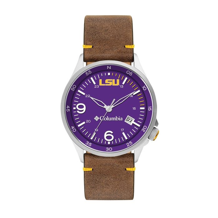 LSU Canyon Ridge 3-Hand Date Saddle Leather Watch by Columbia Sportswear