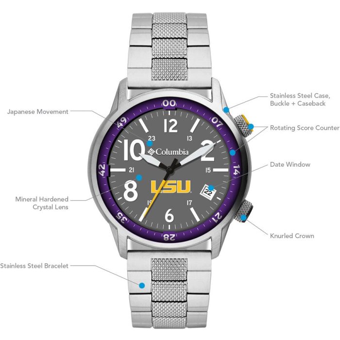 LSU Outbacker 3-Hand Date Stainless Steel Watch by Columbia Sportswear