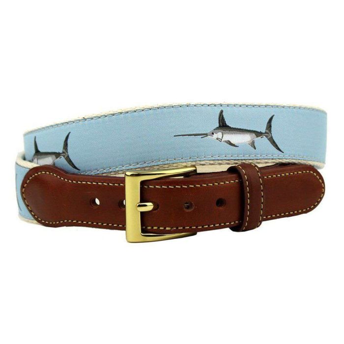 Affable Swordfish Leather Tab Belt in Light Blue by Country Club Prep