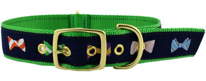 Dog Collar in Navy Ribbon on Kelly Green Canvas with Bow Ties by Country Club Prep