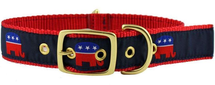 Dog Collar in Navy Ribbon on Red Canvas with Elephants by Country Club Prep