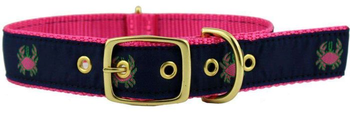 Dog Collar in Navy Ribbon on Pink Canvas with Crabs by Country Club Prep