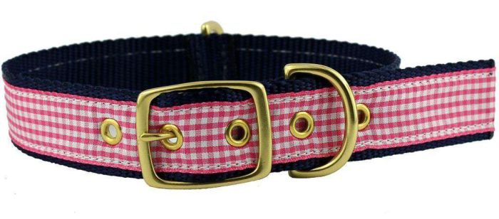 Dog Collar in Pink Gingham Ribbon on Navy Canvas by Country Club Prep