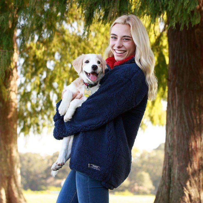 Andover Plaid Sherpa Pullover in Navy & Dark Green by Southern Marsh
