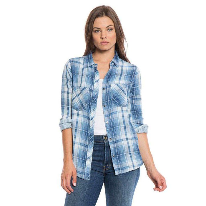 Big Plaid Frosty Tipped Women’s Stadium Pullover in Blue by True Grit (Dylan)