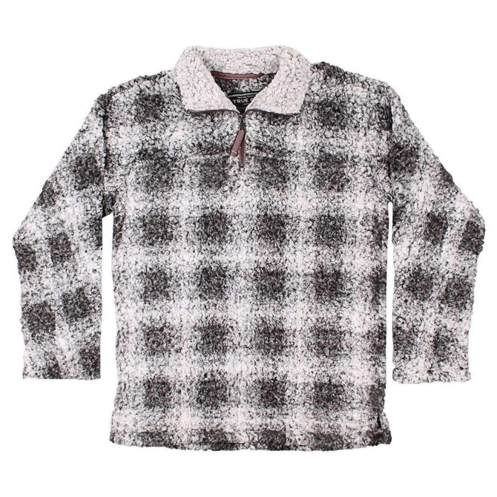 Softest Tip Box Plaid Shearling 1/4 Zip Pullover in Charcoal by True Grit