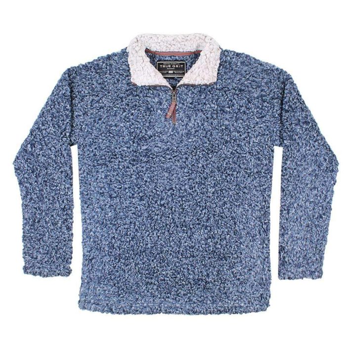 Softest Tip Shearling 1/4 Zip Pullover in Chambray by True Grit