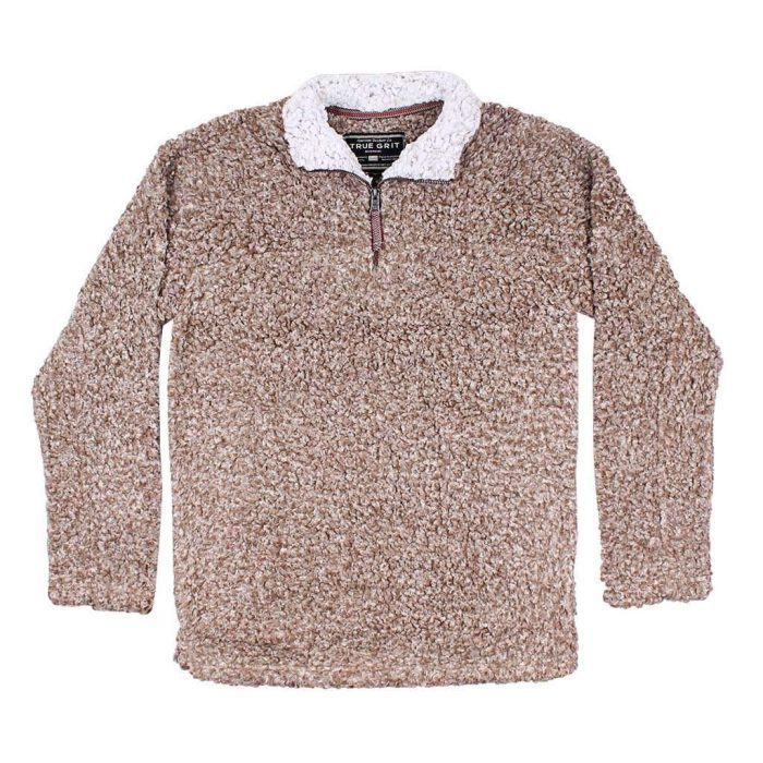 Softest Tip Shearling 1/4 Zip Pullover in Mocha by True Grit