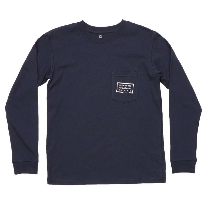 Youth Authentic Long Sleeve Tee in Navy by Southern Marsh