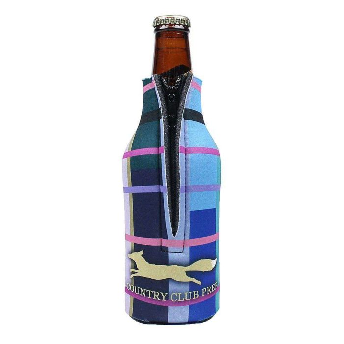 12 oz Zip Madras Plaid Bottle Holder in Navy by Country Club Prep