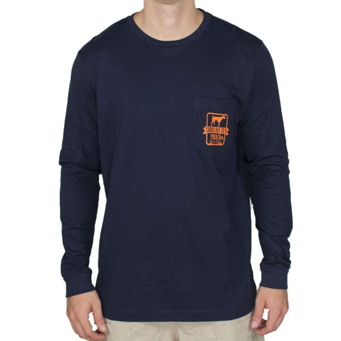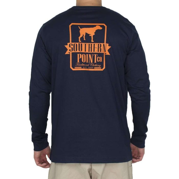Long Sleeve Tradition Tee Shirt in Navy and Orange by Southern Point Co.