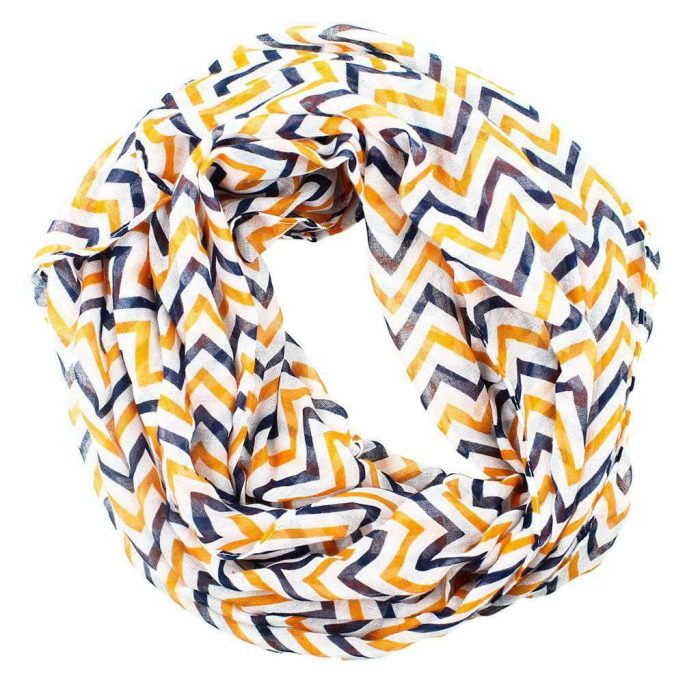 Multi Loop Scarf in White, Orange, and Blue Chevron by Scarf 4 You