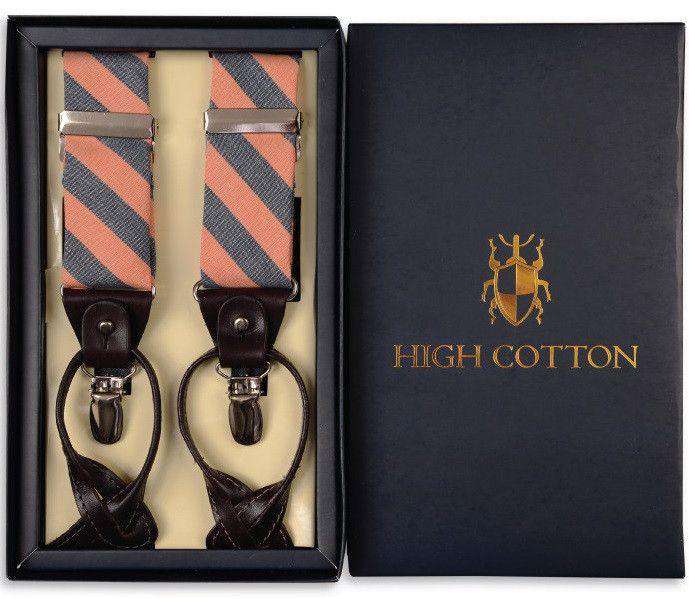 Orange & Navy Oxford Stripe Suspenders/ Braces by High Cotton