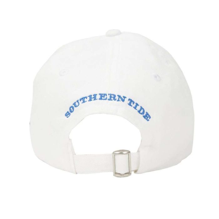 The Skipjack hat is made of 100% cotton.The front of the hat features an embroidered Southern Tide Skipjack while the back includes