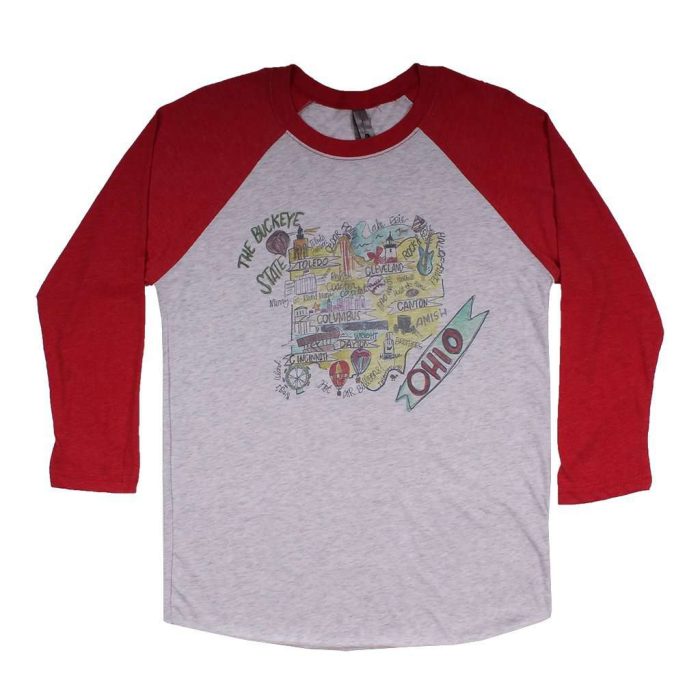 Ohio Cities and Towns Raglan Tee Shirt in Red by Southern Roots