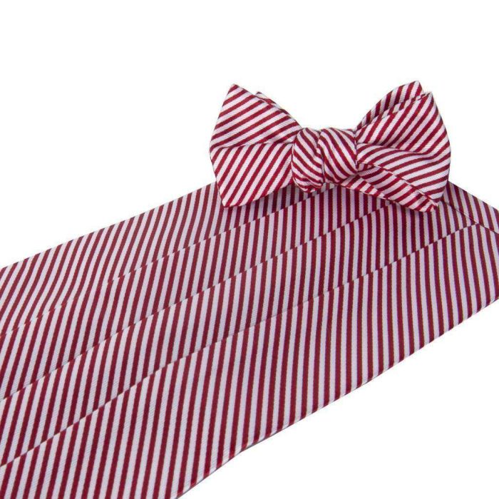 CG Stripes Signature Series Cummerbund and Bow Set in Red by Collared Greens