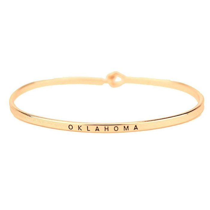 Oklahoma Engraved Brass Hook Bracelet in Gold by Country Club Prep