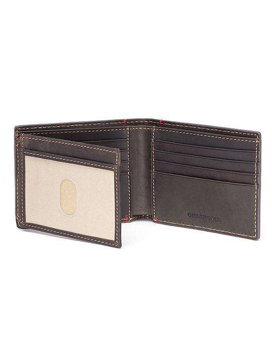 Full-grain leather exteriorEmbossed exterior logoSchool color exterior hand tack detailsSchoolĆ color webbing within the bill compartment5 credit card