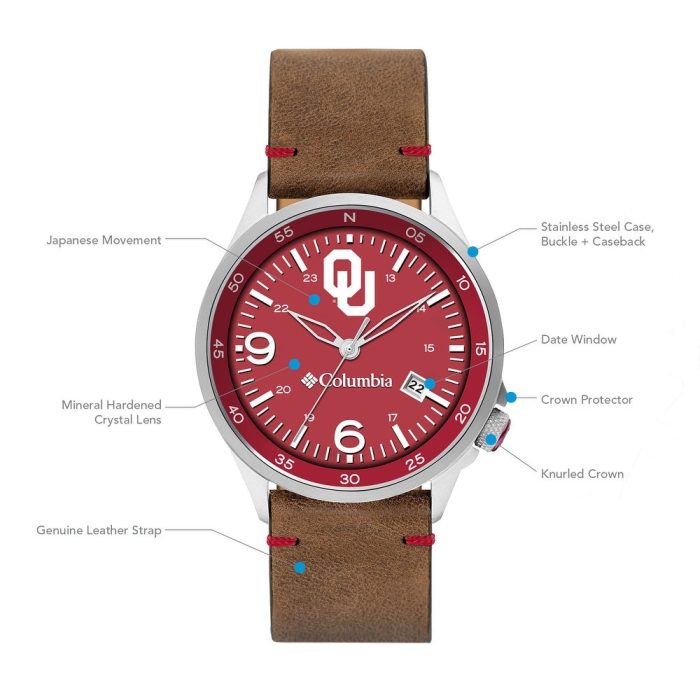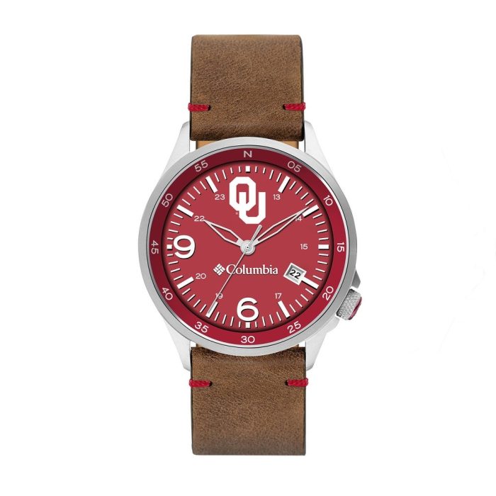 University of Oklahoma Canyon Ridge 3-Hand Date Saddle Leather Watch by Columbia Sportswear
