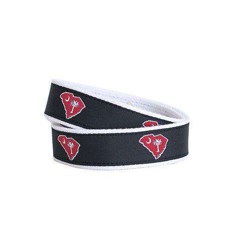 SC Columbia Gameday Leather Tab Belt in Black Ribbon with White Canvas Backing by State Traditions