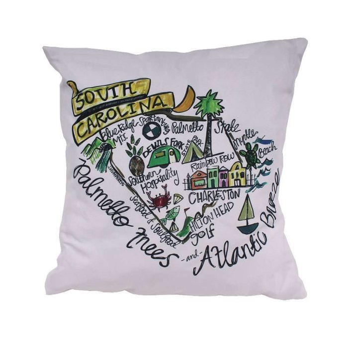 South Carolina Roadmap Duck Cloth and Burlap Pillow by Southern Roots