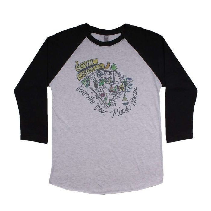 South Carolina Roadmap Raglan Tee Shirt in Black by Southern Roots
