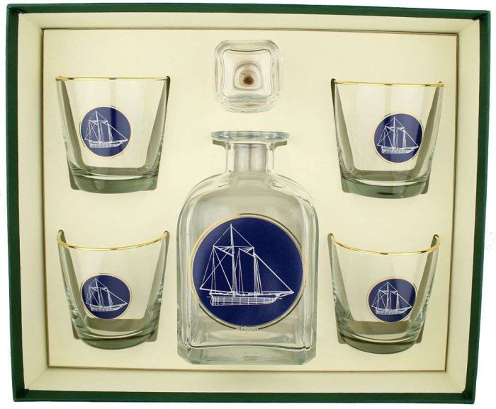 America’s Cup Decanter Set with Old Fashioned Glasses by Richard E. Bishop