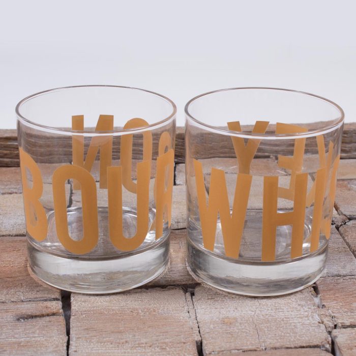 DETAILSHeavy duty glass constructionBold, gold letteringStandard lowball sizingComes in set of two glassesOne glass reads
