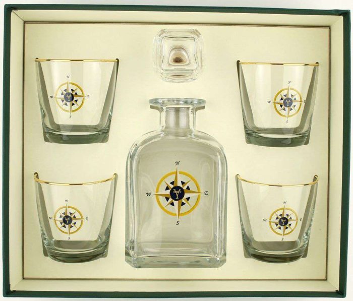 - Gift boxed- 4 9oz old fashioned glasses- 28oz decanter- Featuring a great nautical compass rose design