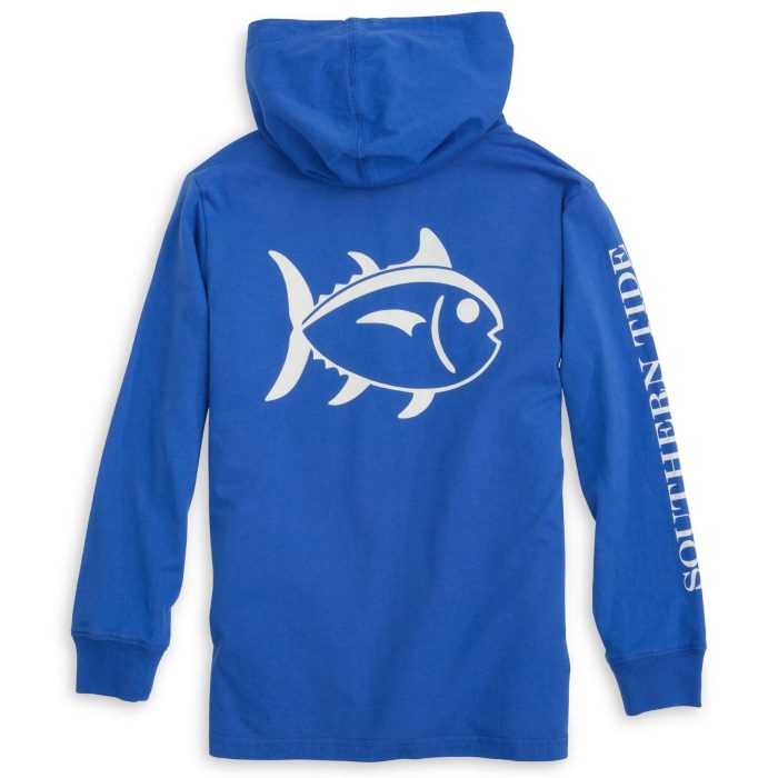 Kids Skipjack Long Sleeve Hoodie T-Shirt in Royal Blue by Southern Tide